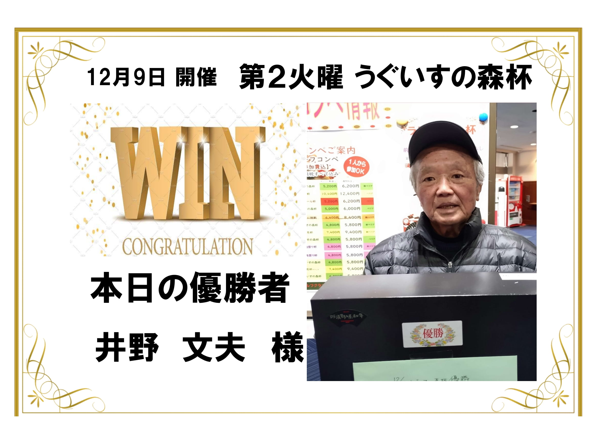 12/9開催 うぐいすの森杯 優勝者